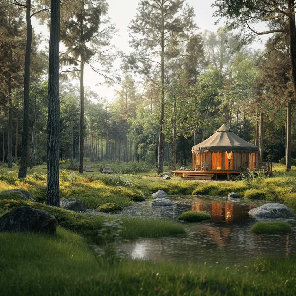 Chalets, yourtes et cabanes dans les arbres, parfaitement intégrés à leur environnement.